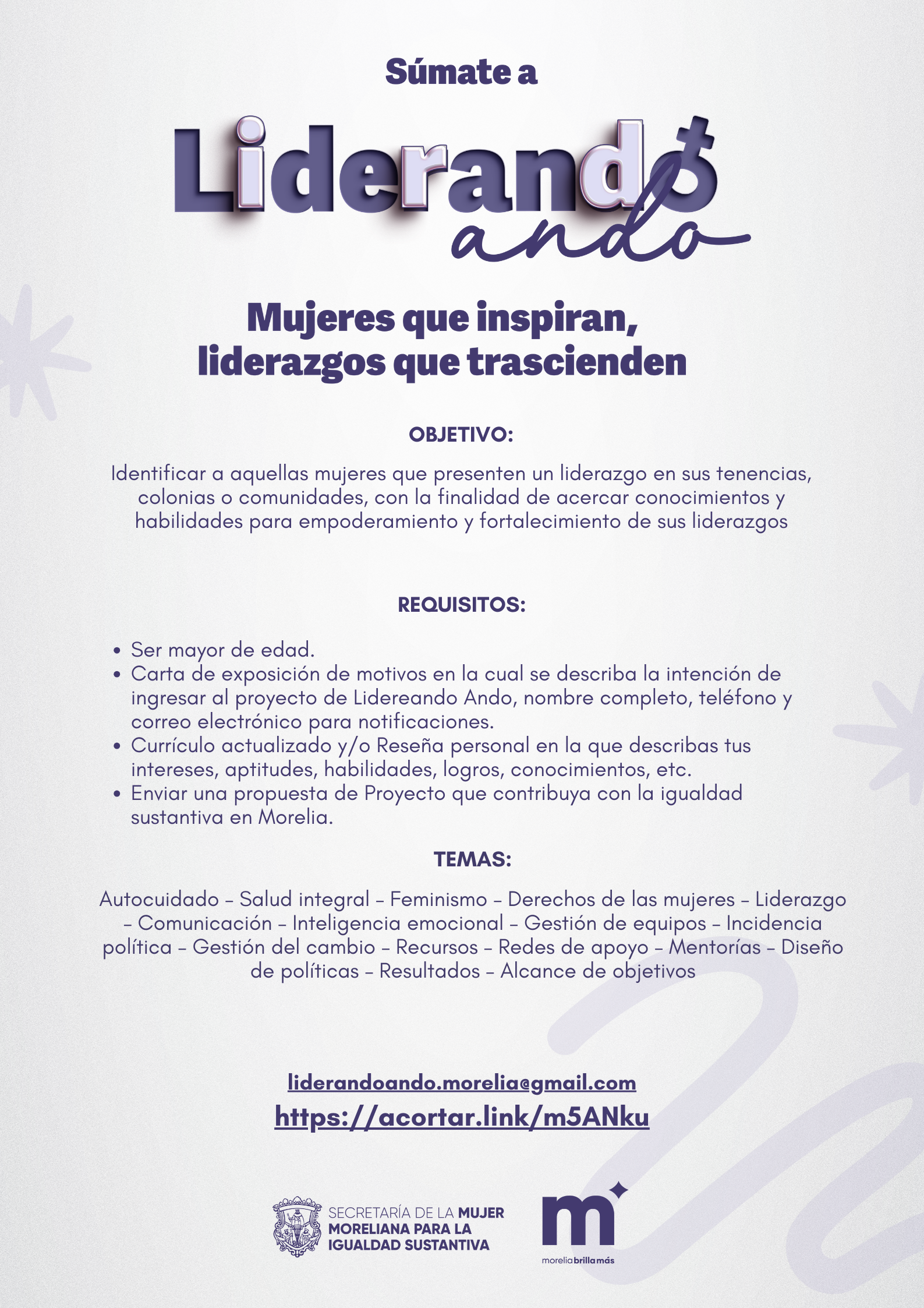 Morelia, Michoacán, a 11 de septiembre de 2025.- El Ayuntamiento de Morelia, a través de la Secretaría de la Mujer Moreliana para la Igualdad Sustantiva (SEMMUJERIS) y la Secretaría de Desarrollo Urbano y Movilidad (SEDUM), anunció la apertura de la